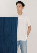 Its design is rooted in the principle of an axis—an imaginary, symmetrically-arranged line—with the pleats specifically representing themes of balance, stability, and central alignment.