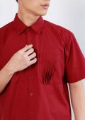 A distinguishing feature is the artful pleated work on the front pocket, which imparts a unique texture and refined detail to the piece.